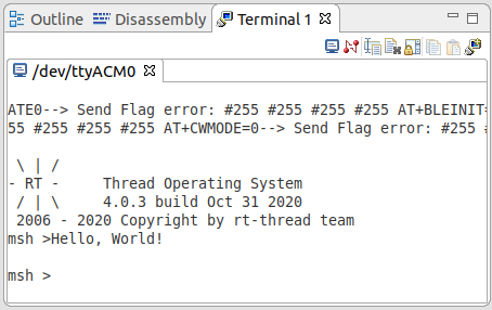 下载程序之后,连接串口(115200-N-8-1),可以看到 RT-Thread 的输出信息: