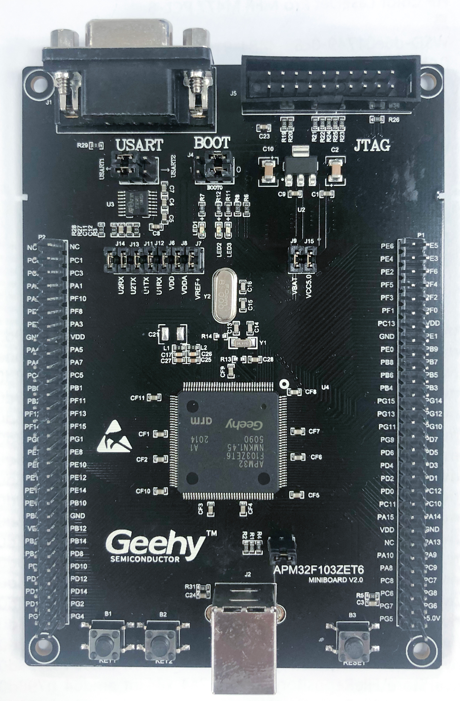 APM32F103ZE MINI BOARD,采用标准JTAG/SWD调试接口,引出了全部的IO。开发板外观如下图所示: