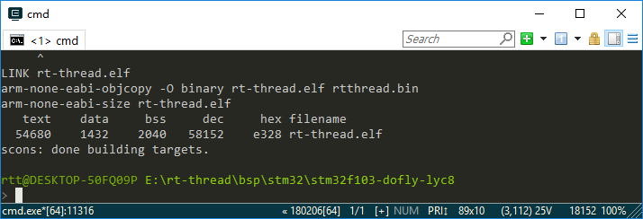 For example, the target BSP is rt-thread\bsp\stm32\stm32f103-dofly-lyc8: