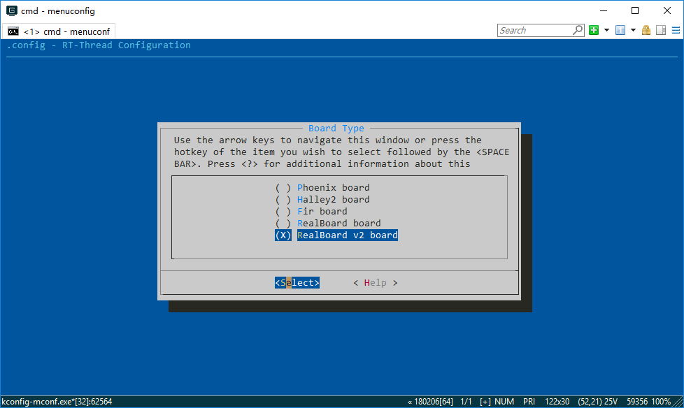 来配置RT-Thread。当前这份BSP支持多种板卡类型,包括哈雷2,凤凰板以及睿赛德提供的RealBoard X1000开发板等。