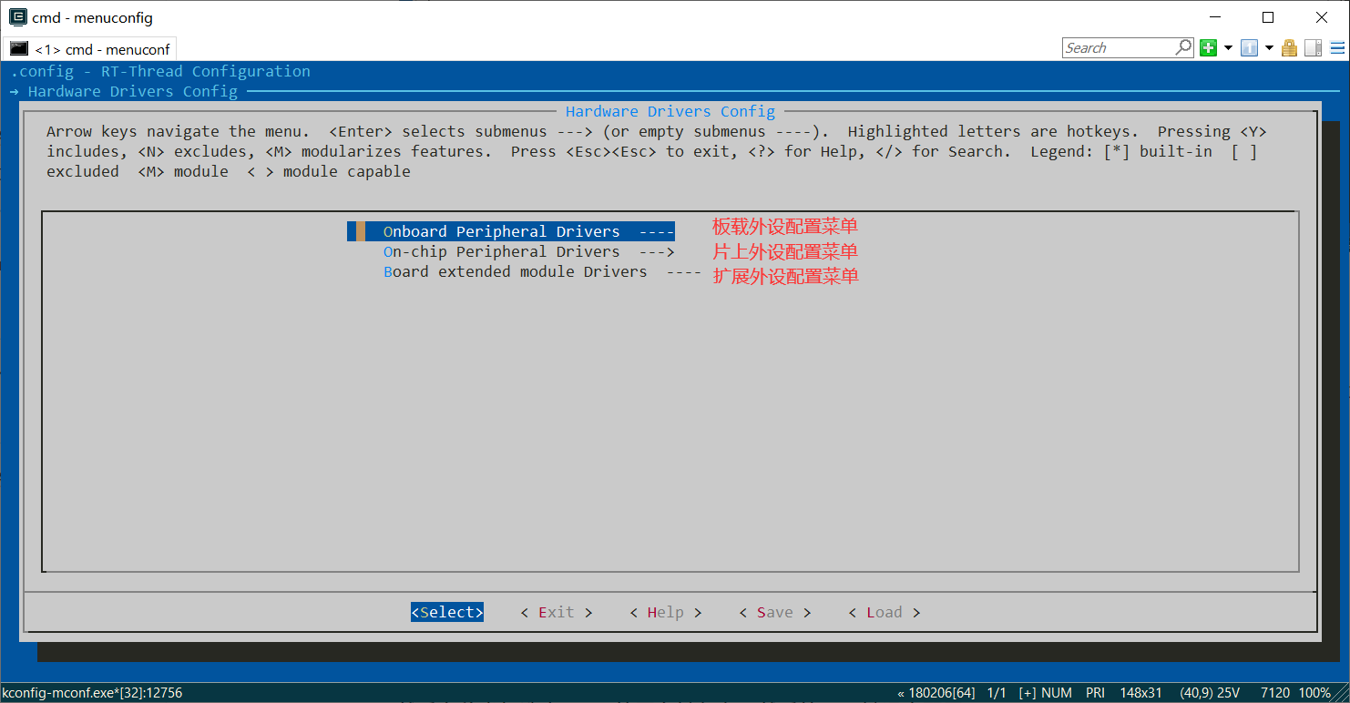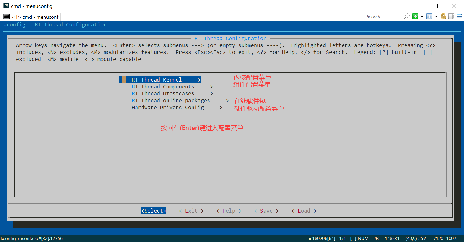 在目录 rt-thread\bsp\gd32\gd32407v-start 下打开 menuconfig 配置界面。
