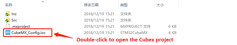 Create a CubeMX project based on the target chip. The default CubeMX project is in the CubeMX_Config folder, double-click to open the CubeMX_Config.ioc project, as shown in the figure below: