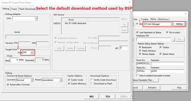 In this step, you need to modify the chip model and the address of the chip startup file. The modification content is shown in the figure below: