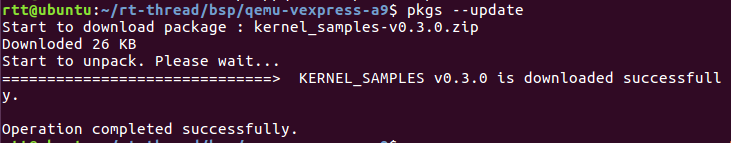 If you have selected an online package, you can download the package to the packages folder in the BSP directory using the pkgs --update command (Git needs to be installed):