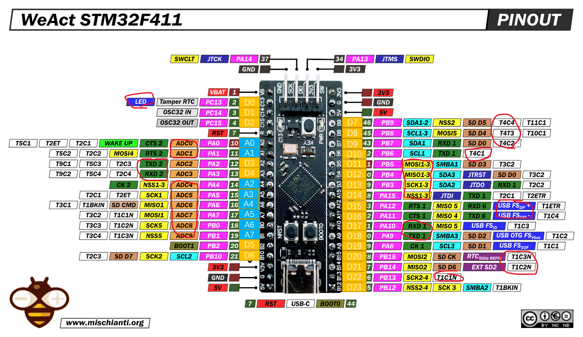 | 0 (D0) | PC13 | 是 | 板载用户LED |