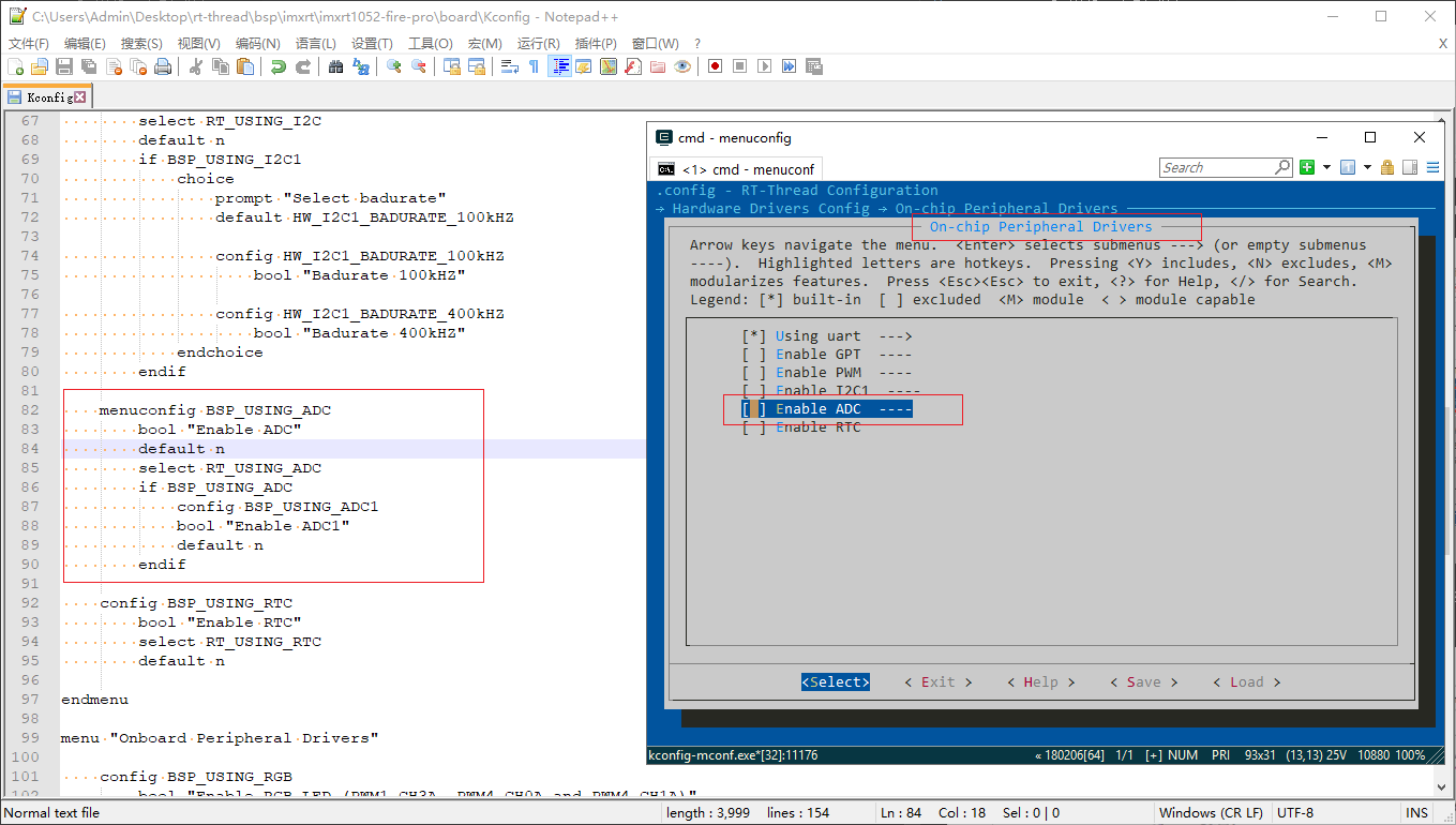 经过上一步的修改,此时重新打开 ENV 工具,在 menuconfig 中就会出现添加的 I2C2 的配置项。