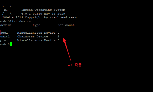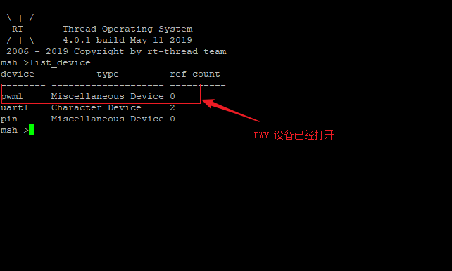 list_device 命令,可以看到 gpt1 设备已经注册到内核,说明驱动已经添加成功。list_device 命令,可以看到 pwm 设备已经注册到内核,说明驱动已经添加成功。list_device 命令,可以看到 adc1 设备已经注册到内核,说明驱动已经添加成功。