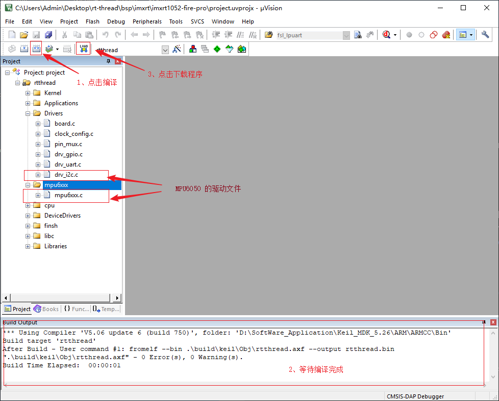 打开生成的 MDK5 工程文件,编译并下载。