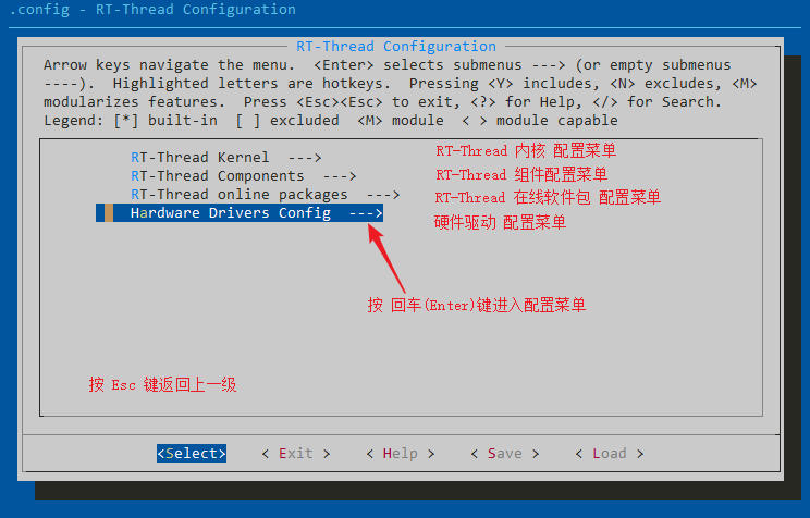 通过键盘上的上下键移动光标,选中 Hardware Drivers Config然后按回车键进入硬件驱动配置菜单。