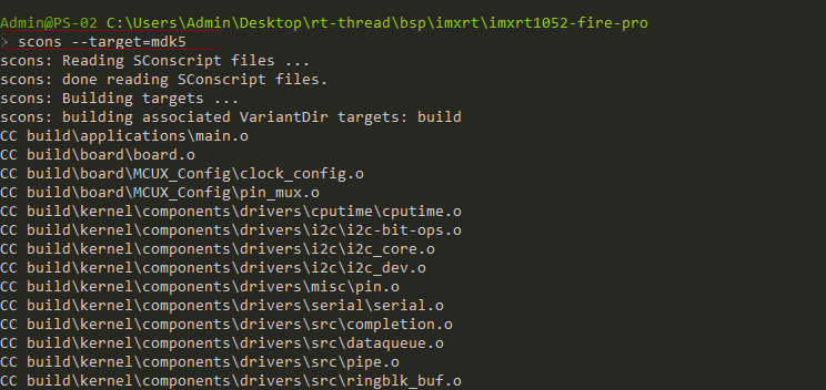 输入命令 scons --target=mdk5 生成 MDK5 的工程。