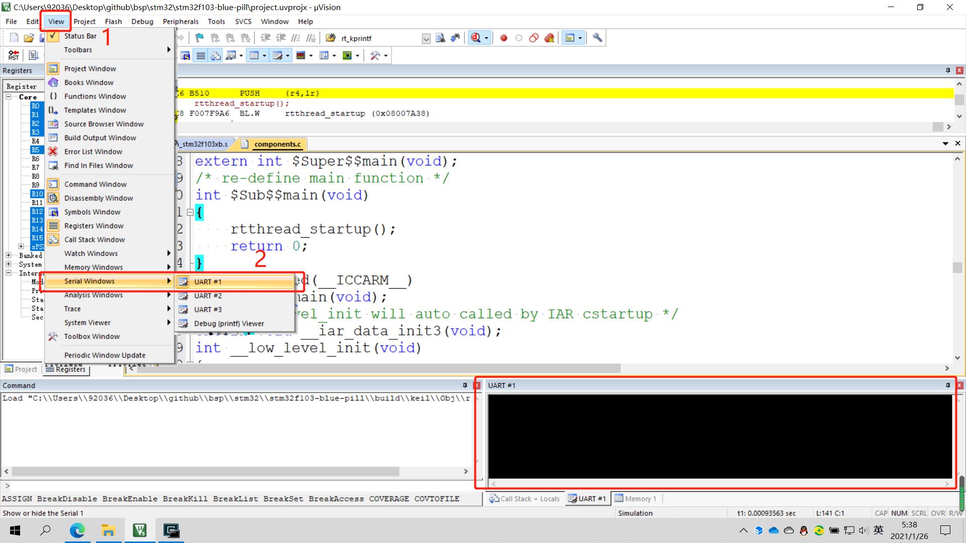 If you haven't had a real Blue Pill Board yet, you may use MDK-Keil5 simulator to simulate to run RT-Thread on Blue Pill Board.