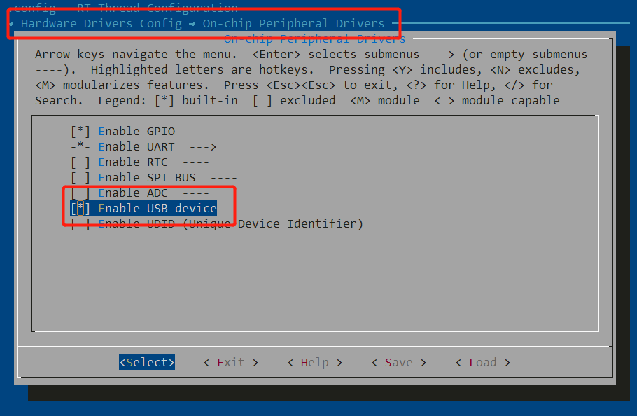 Step 2: Enable USB Device Driver and enable to use device as CDC device.