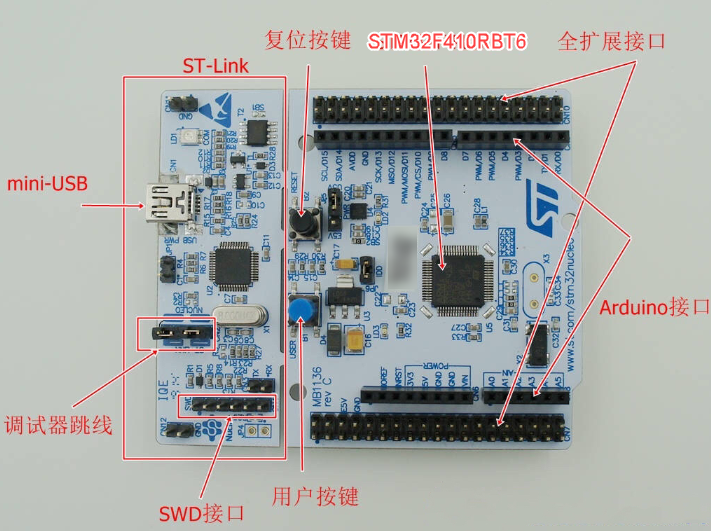 开发板更多详细信息请参考意法半导体 STM32F410-Nucleo-64 开发板介绍