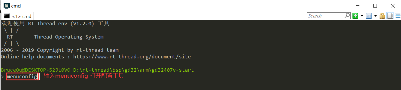 在目录 rt-thread\bsp\gd32\arm\gd32407v-start 下打开 menuconfig 配置界面。