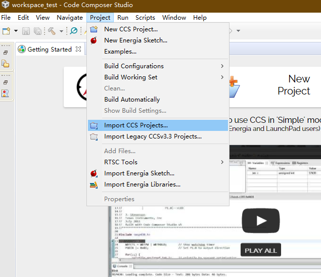 首先打开 Code Composer Studio,点击 Project -> Import CCS Projects...