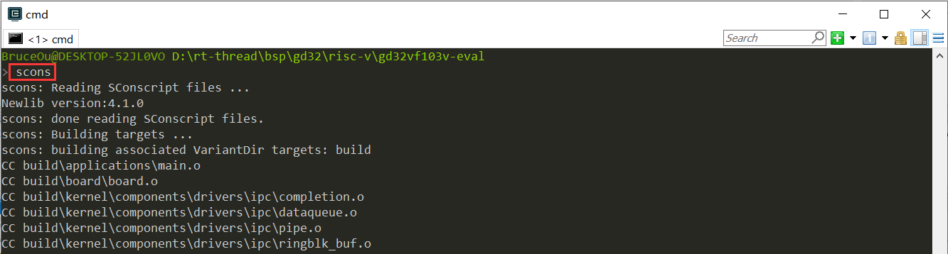 在目录 rt-thread\bsp\gd32\risc-v\gd32vf103v-eval 下打开 menuconfig 配置界面。