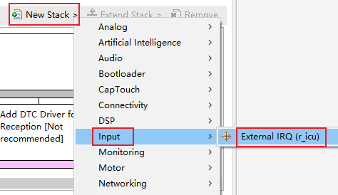 选择 Stacks 配置页,点击 New Stack 找到 UART。