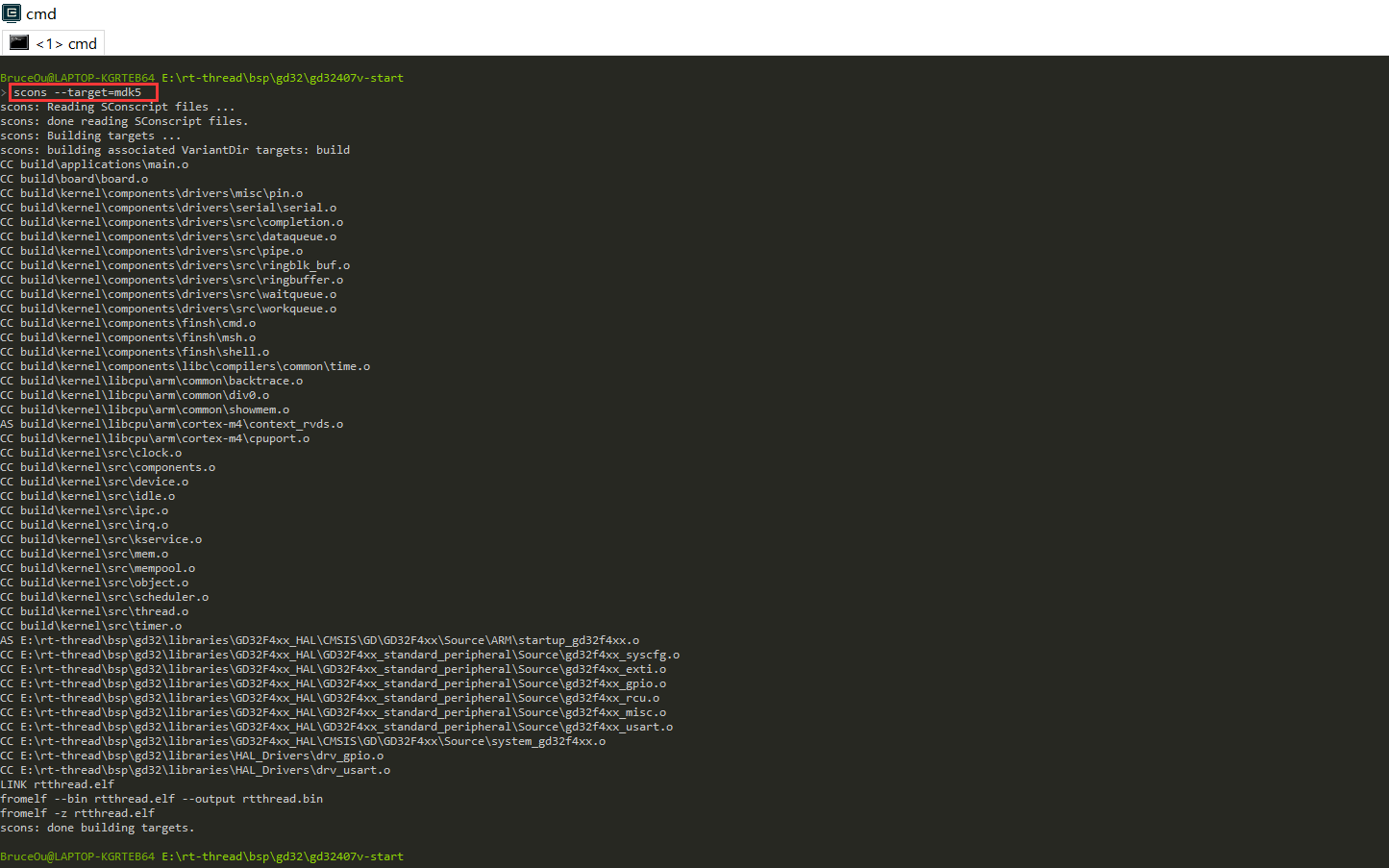 10.使用env生成MDK工程 在env中执行:scons --target=mdk5
