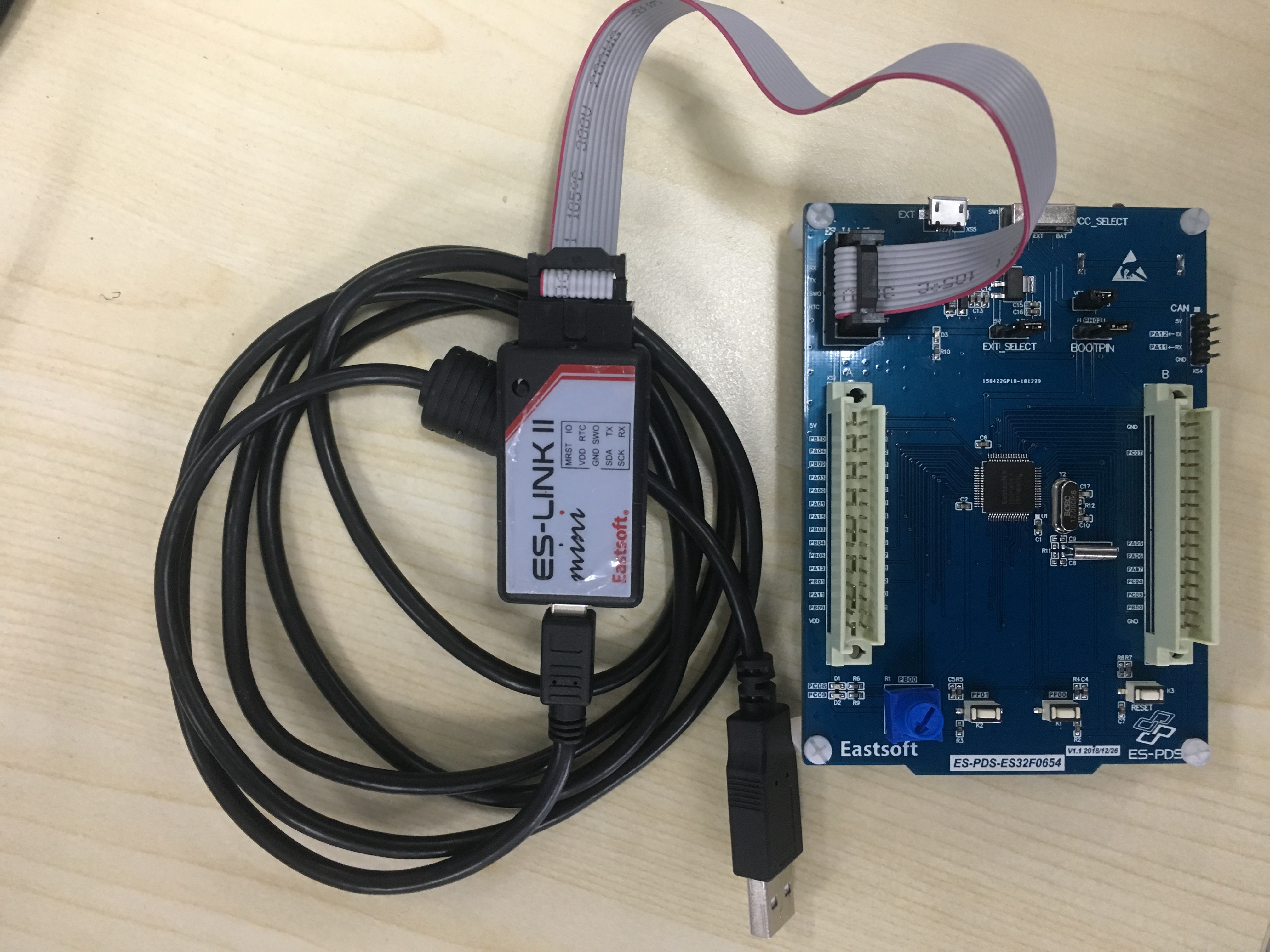 使用ESlinkⅡ(mini)连接开发板如下图所示: