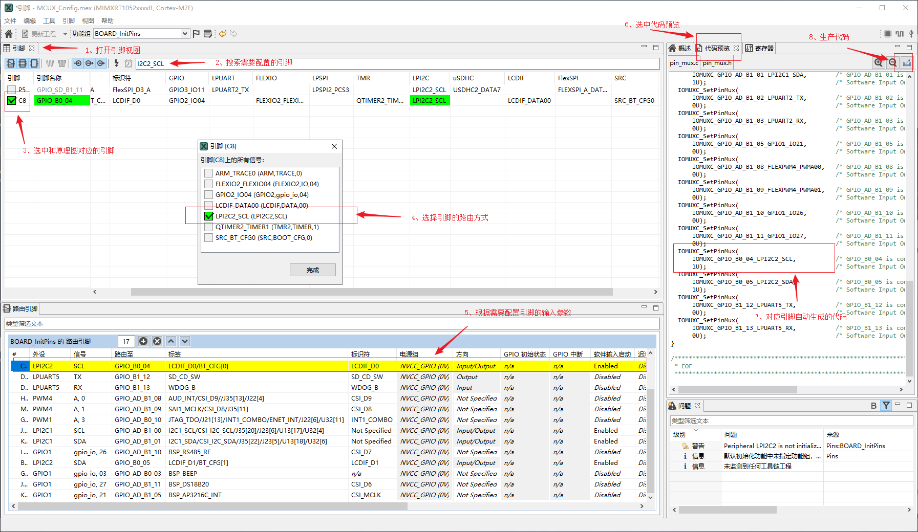 | 4 | I2C | 配置所需要的引脚(或者使用默认引脚) |