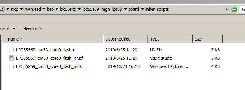 本次示例所用的 LPC55S6x 系列 BSP 模板文件夹结构如下所示: