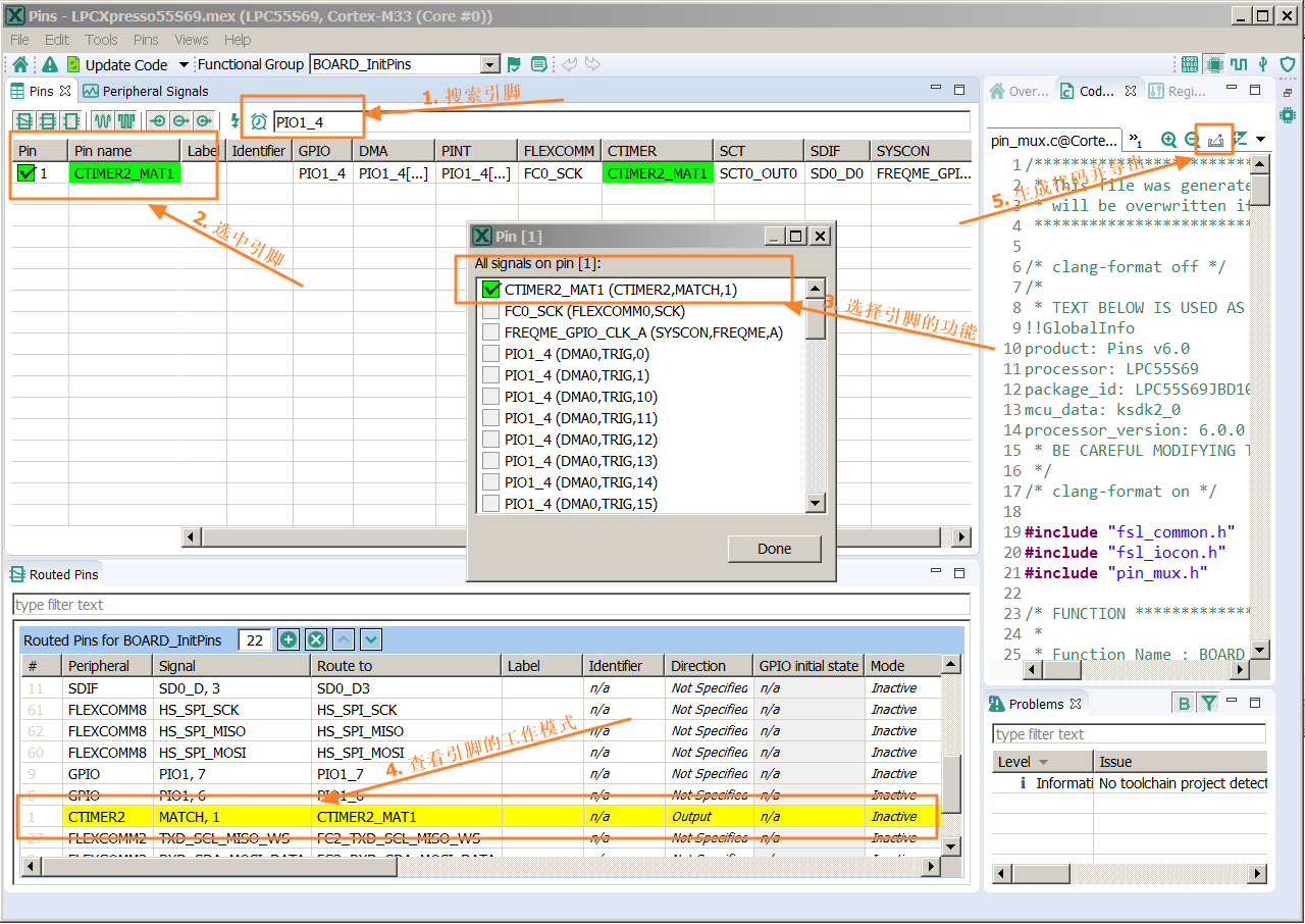 为 BSP 添加驱动时,MCUXpress工具可以快速的完成配置管脚的工作。而外设初始化,中断配置,DMA配置等等则由 RT-Thread 提供的驱动文件来完成。