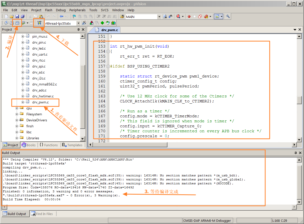 部分驱动如果没有适配 BSP 所属的 LPC55Sxx 系列,请等待 RT-Thread 团队更新。