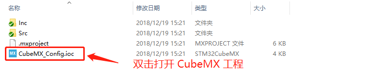 在制作 BSP 的第二步,需要创建一个基于目标芯片的 CubeMX 工程。默认的 CubeMX 工程在 CubeMX_Config 文件夹中,双击打开 CubeMX_Config.ioc 工程,如下图所示: