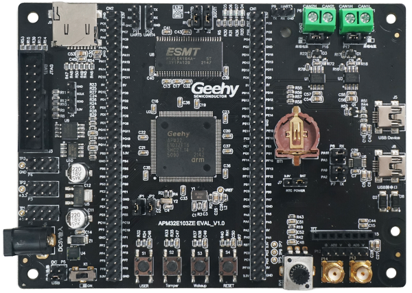 APM32E103ZE EVAL BOARD,采用标准JTAG/SWD调试接口,引出了全部的IO。开发板外观如下图所示: