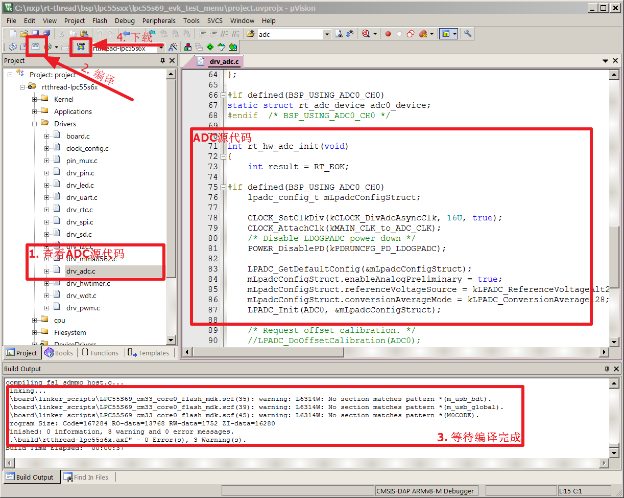 部分驱动如果没有适配 BSP 所属的 LPC55Sxx 系列,请等待 RT-Thread 团队更新。
