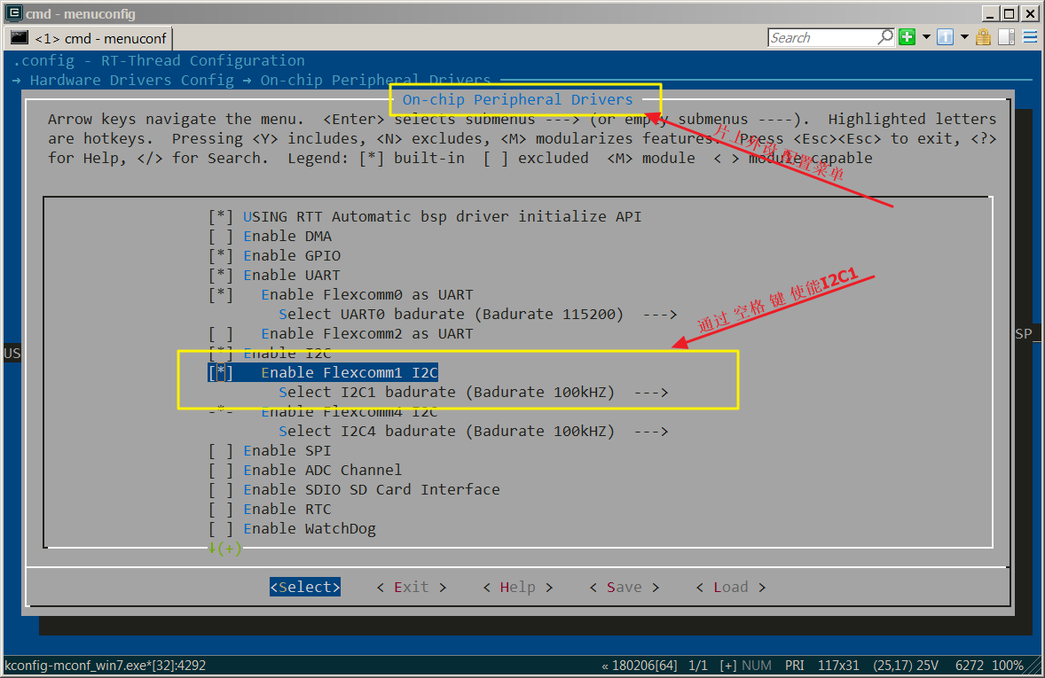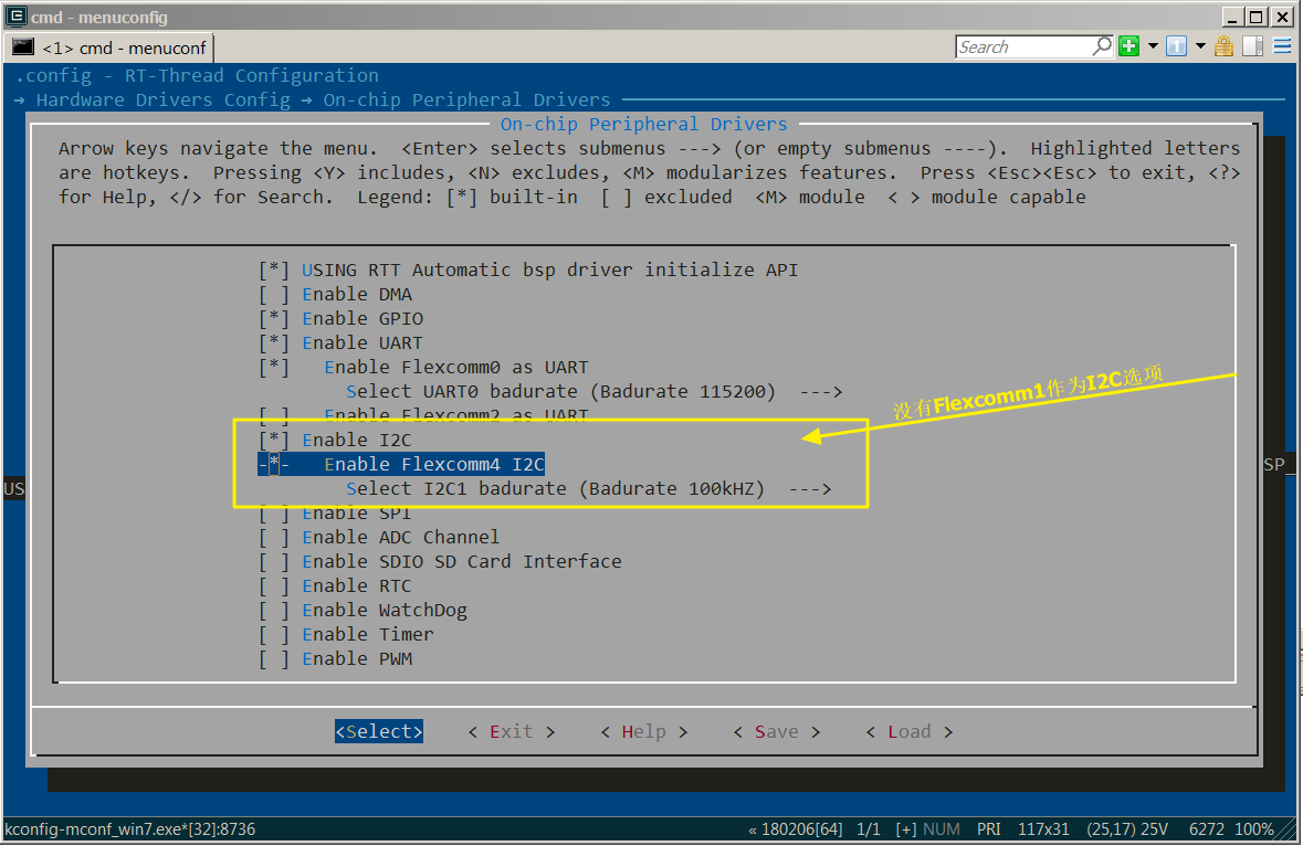 经过上一步的修改,此时重新打开 ENV 工具,在 menuconfig 中就会出现添加的 I2C4 的配置项。