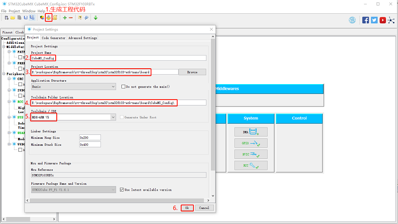 1. 设置项目名称,并在指定地址重新生成 CubeMX 工程: