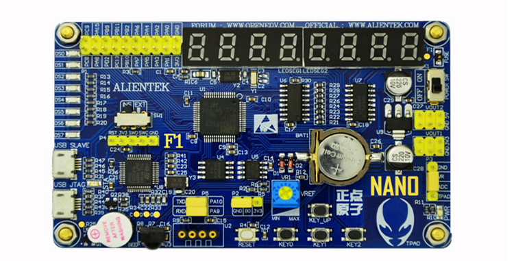 ATK-NANO STM32F103 是正点原子推出的一款基于 ARM Cortex-M3 内核的开发板,最高主频为 72Mhz,该开发板具有丰富的板载资源,可以充分发挥 STM32F103 的芯片性能。