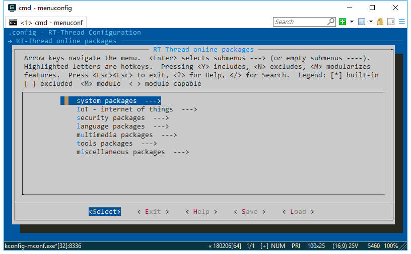 Menuconfig is a graphical configuration tool that RT-Thread uses to configure and tailor the entire system.