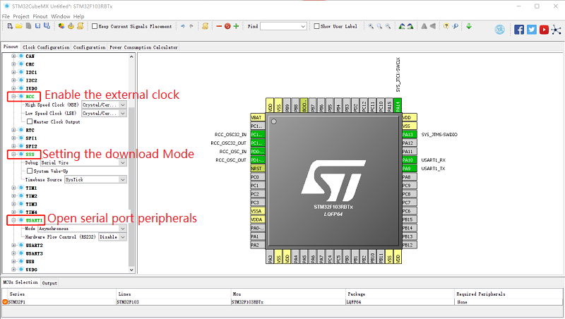 Configure the system clock, peripheral pins, etc. The steps are shown in the figure below: