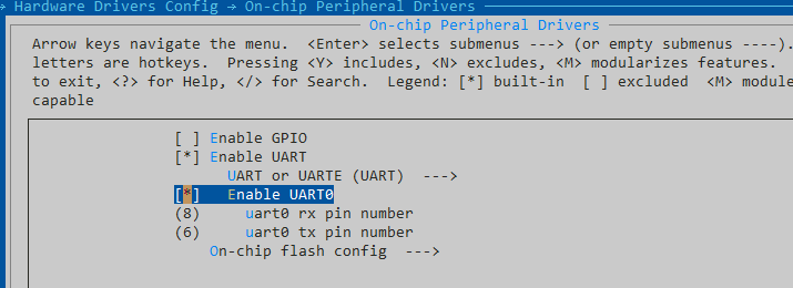 配置UART0相关的的引脚配置, 选中对应的UART0 TX RX引脚
