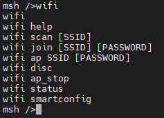 Enter wifi and press tab to list wifi-related commands: