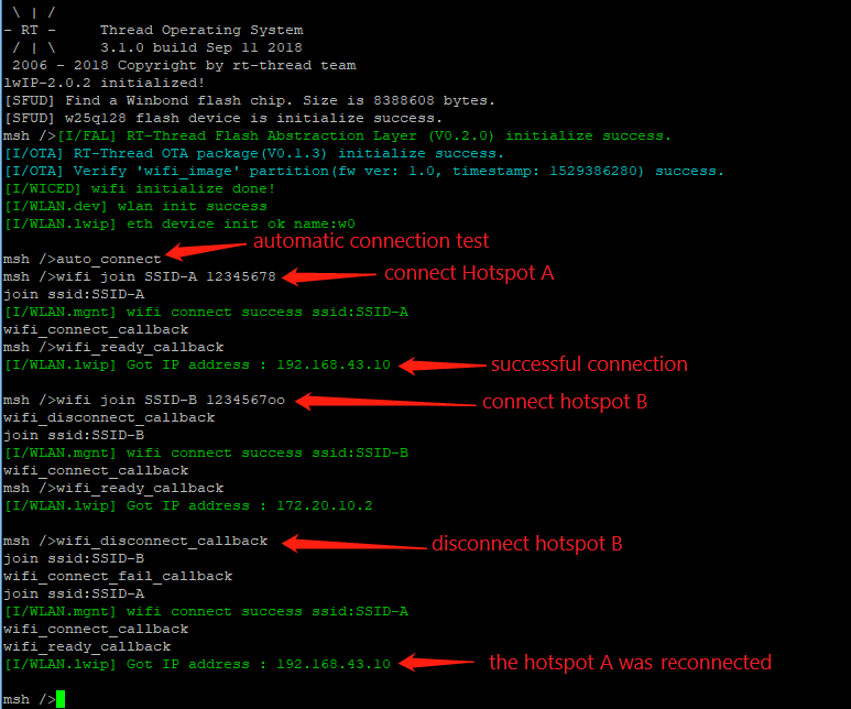 | rt_wlan_connect() | Synchronized Hotspot Connection |