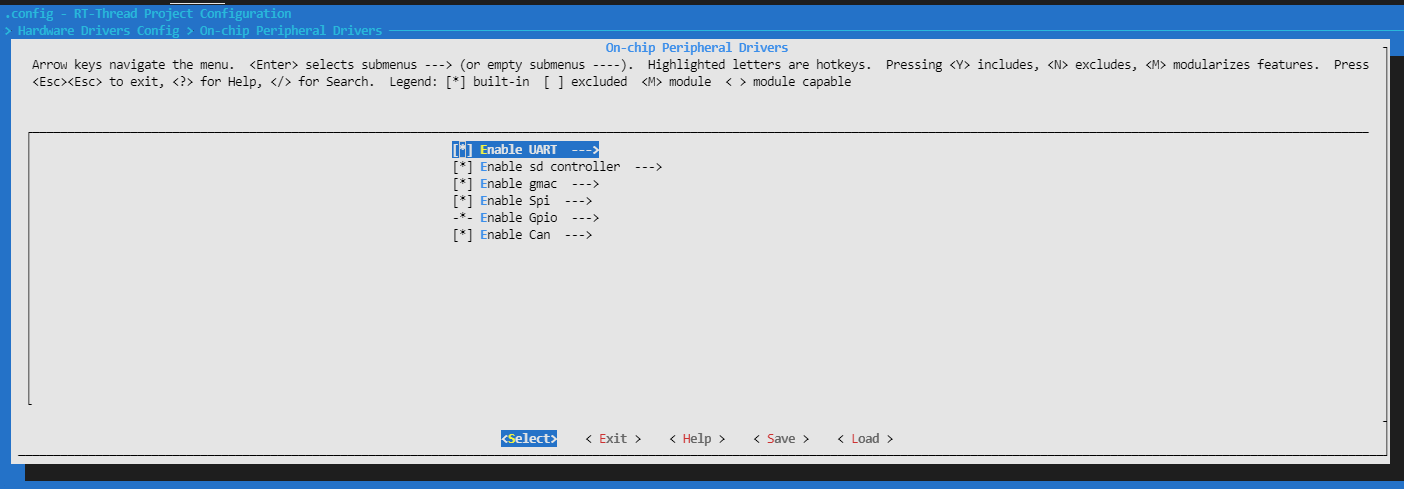 4. 使用 scons --menuconfig 配置需要的外设