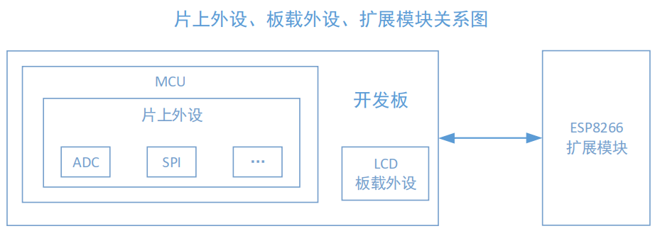• 扩展模块驱动:指可以通过扩展接口或者杜邦线连接的开发板的模块,例如 ESP8266 模块