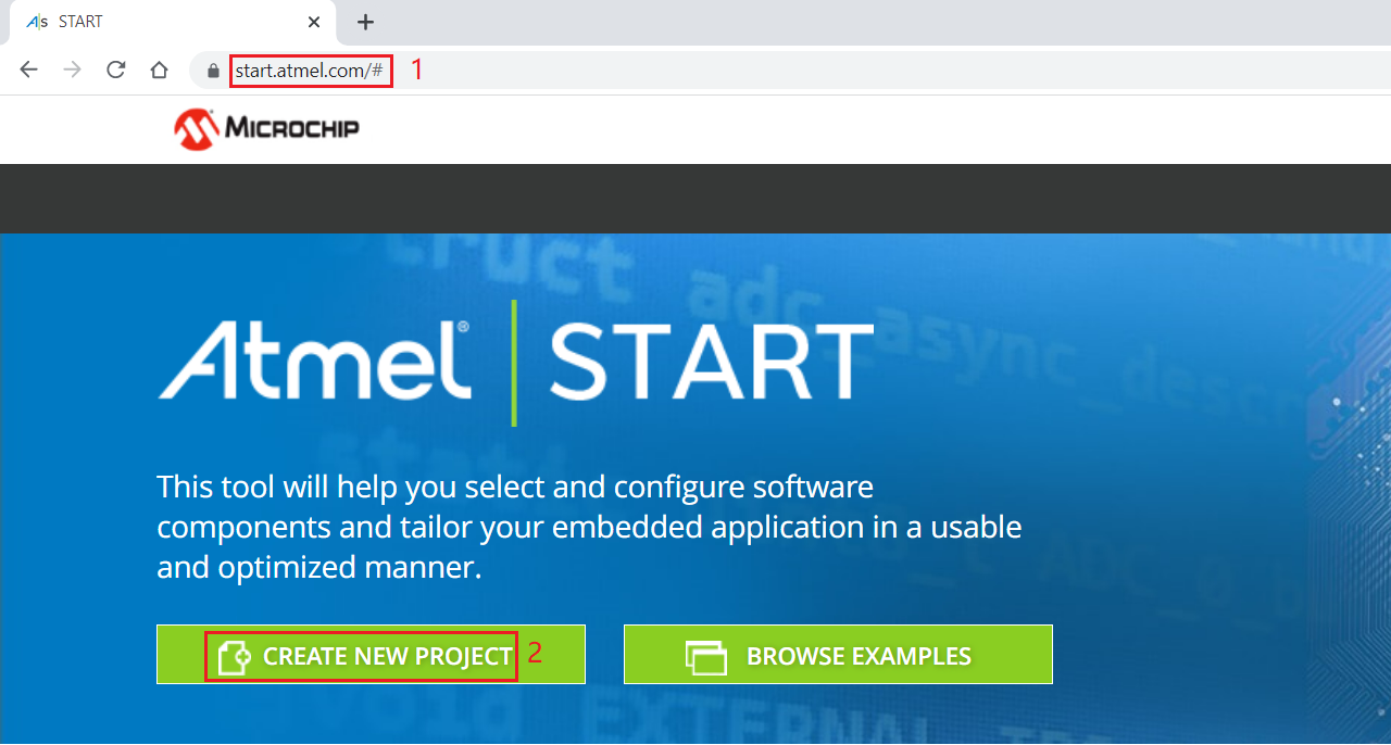 * Visit <https://start.atmel.com/#> and click CREATE NEW PROJECT.