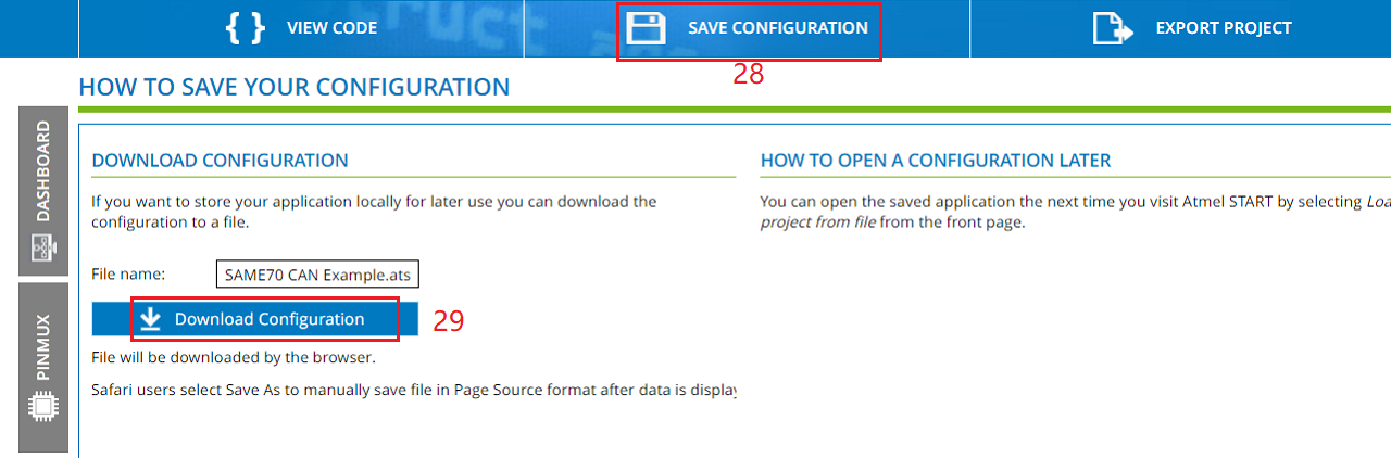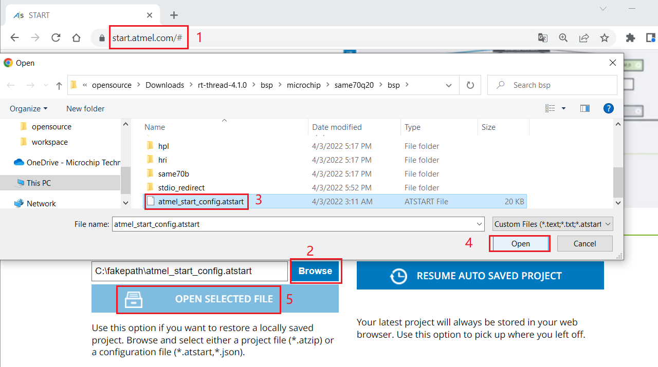 * Visit <https://start.atmel.com/#> and upload project configuration.