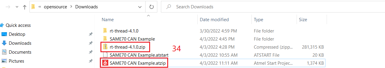 * Unzip downloaded RT-Thread and SAME70 CAN Example