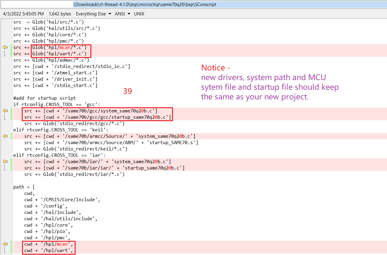 * Modify rt-thread-xxx\bsp\microchip\same70q20\bsp\SConscript.