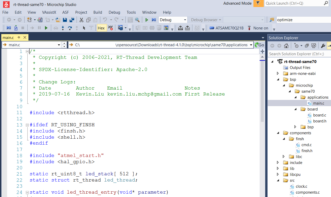 3. RT-Thread debugging with Microchip IDE