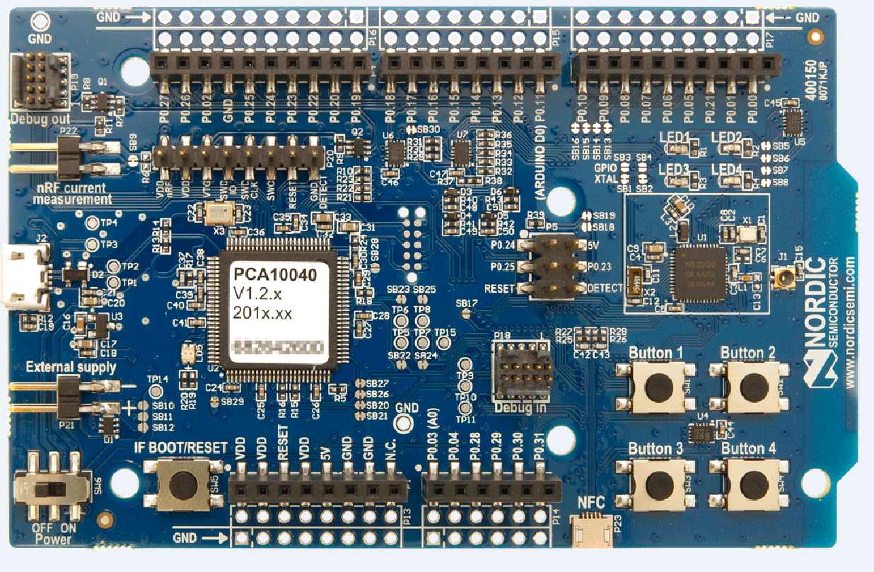 开发板更多详细信息请参考NORDIC官方PCA10040
