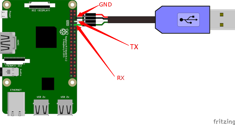 目前版本是使用raspi4的 GPIO 14, GPIO 15来作路口输出,连线情况如下图所示: