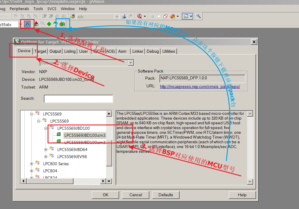 本节以制作官方 LPCXpresso55S69-EVK 开发板的 BSP 为例,讲解如何为一个新的开发板添加 BSP。