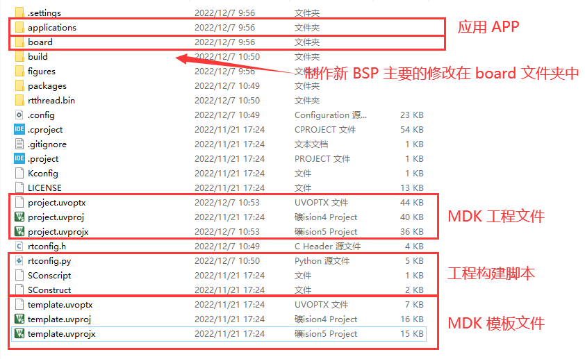 以重新生成 MDK 工程为例,介绍如何重新生成 BSP 工程。