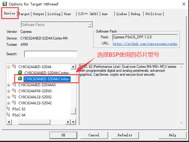 本节以制作 psoc6-cy8ckit-062S2-43012 开发板的 BSP 为例,讲解如何为一个新的开发板添加 BSP。